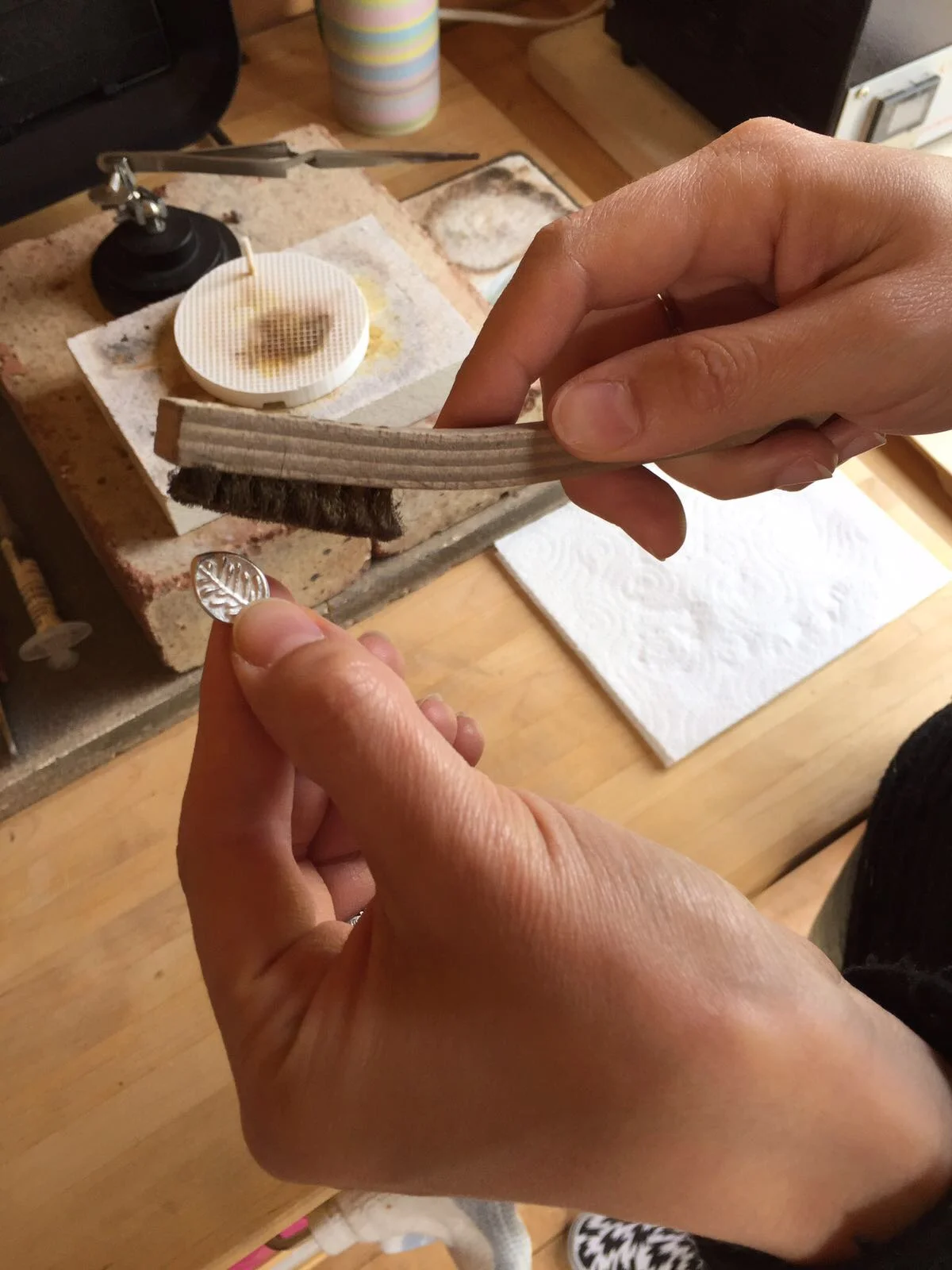 Once the precious metal clay was fired and quenched, I polished it with a brass brush and special papers to buff and get a lovely shine and finish.