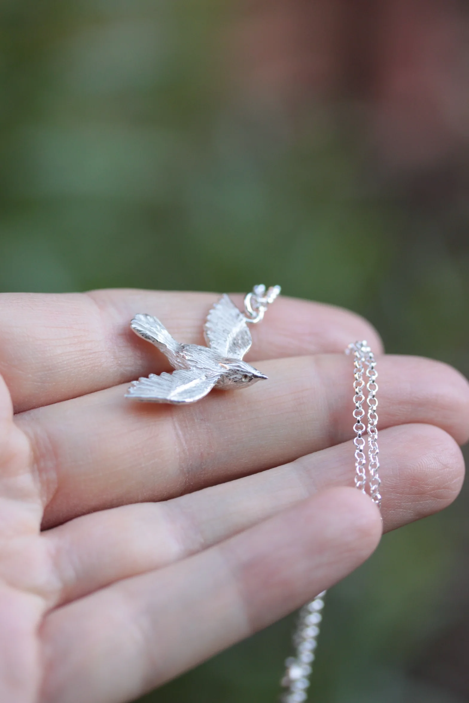 I had a wonderful commission recently from a customer who wanted a little wren necklace for his Granddaughter whose middle name means wren in Irish. He already had our swallow necklace for his other Granddaughter and the wren would make a matching set for each of them.