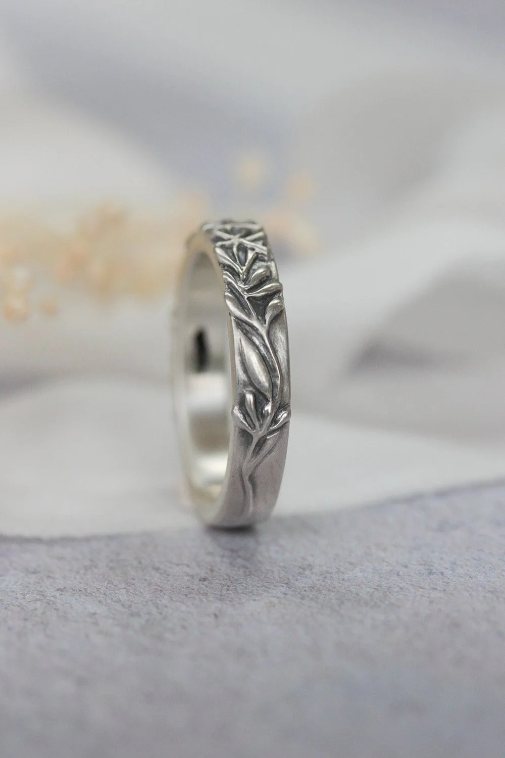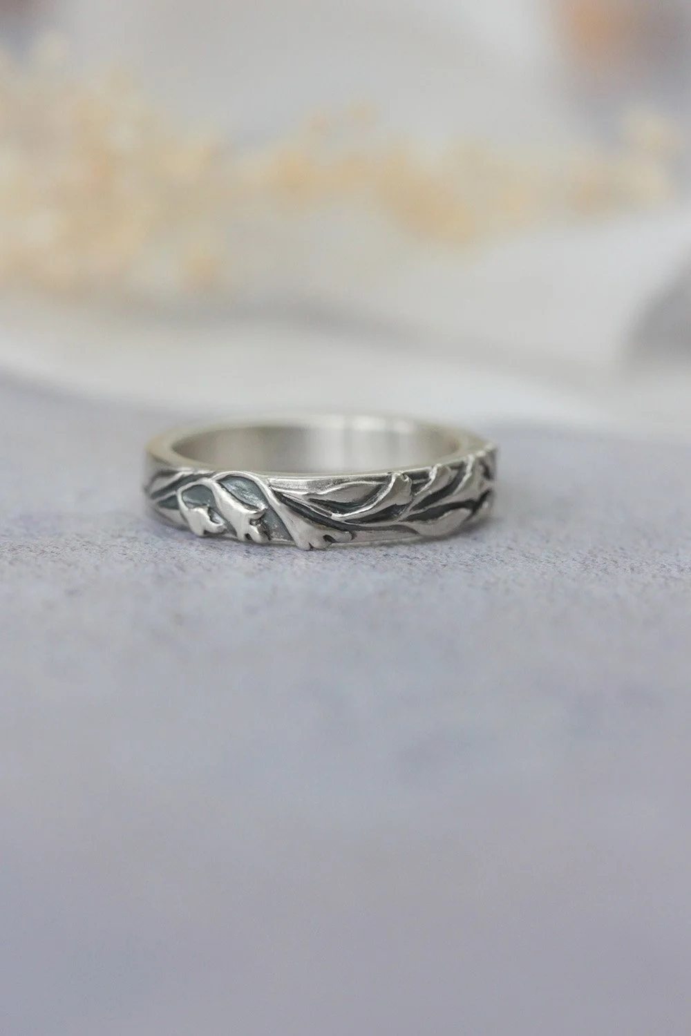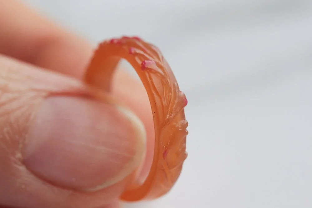 Once the ring was cast into metal, I tidied it up some more and gave it a brushed finish. Adding oxidisation helped the floral details stand out further: