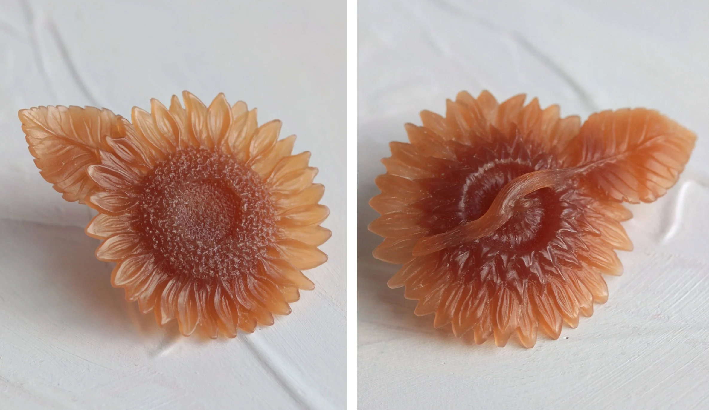 “Sunflower Netsuke”, hand carved jeweller’s wax.