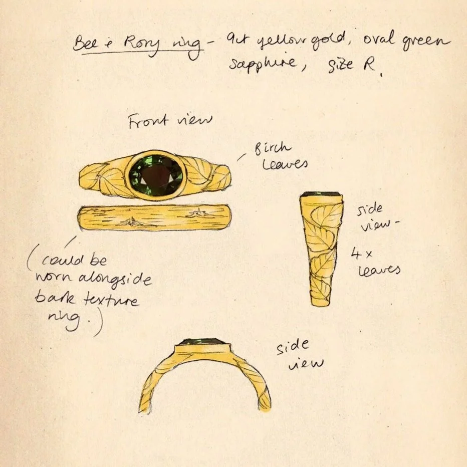 As the first step of the process I will help you visualise your jewellery. I will send you sketches and quotes based on what we have discussed. A deposit of £50 is required for this stage. This will be deducted from the final price of your finished piece. Please note, this deposit is non-refundable should you choose to cancel your commission.
