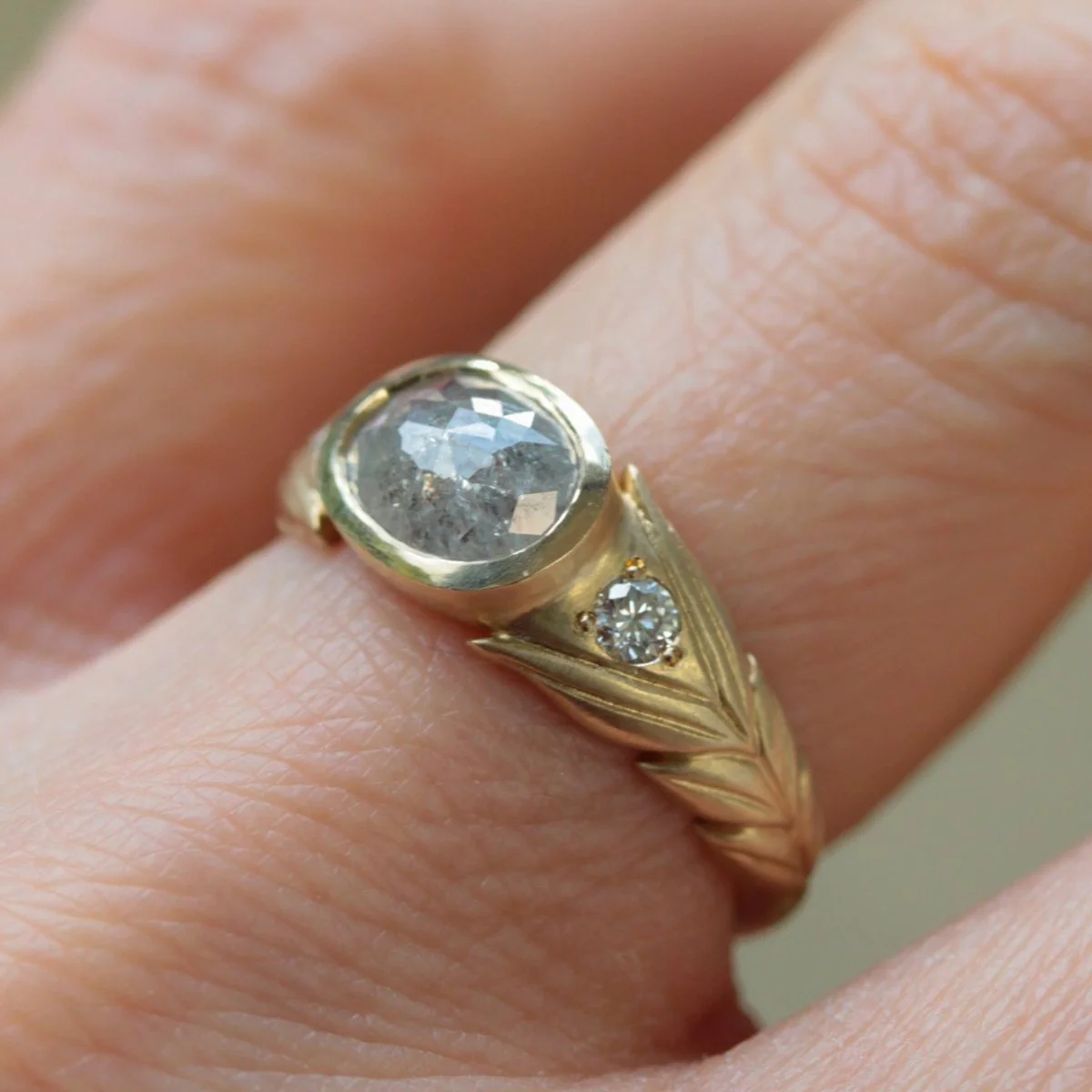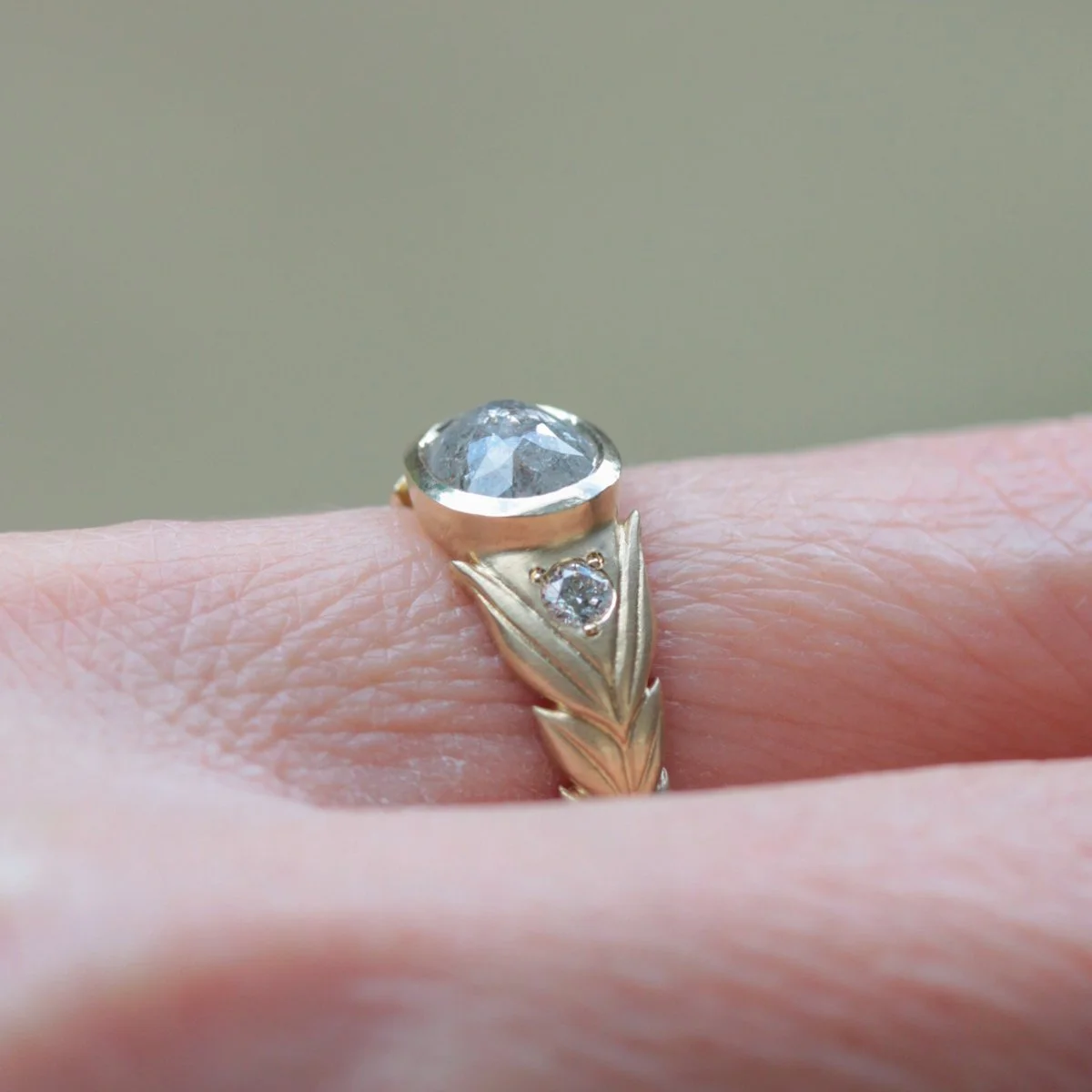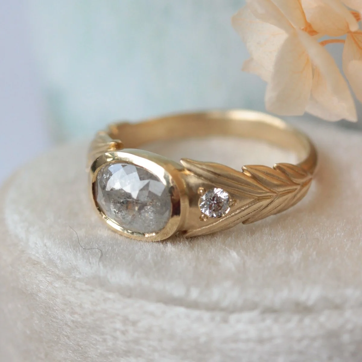 Rose cut grey diamond gold laurel ring £4,375.00 Sold Out Olive branch silver signet ring £95.00 Rose cut champagne diamond gold trilogy ring £3,945.00 Rowan leaf green sapphire gold engagement ring £2,140.00 Elder green beryl silver ring £140.00 Silver curved rowan twig ring £80.00 Leaf garland diamond engagement ring £1,915.00 Lily leaf blue sapphire engagement ring £1,885.00 Meadow trilogy diamond gold engagement ring £1,550.00 Oak twig silver aquamarine ring £95.00 Rowan twig curved gold wedding ring £790.00 Spinel and sapphire gold lichen ring £1,600.00 Elder green tourmaline gold ring from £715.00 Rowan leaf white sapphire gold engagement ring £2,025.00 Lavender flower silver ring £70.00 Elder leaf crown gold ring £585.00 Pale blue sapphire and diamond meadow trilogy ring £1,695.00 Leaf garland wishbone wedding ring £640.00 Willow leaf gold emerald ring £725.00 Elder leaf crown silver ring £85.00 Wheat Silver Topaz Ring £175.00 Oysterling silver crown ring £130.00