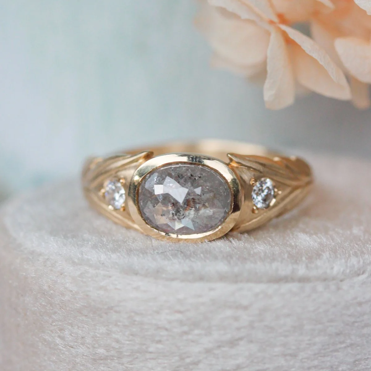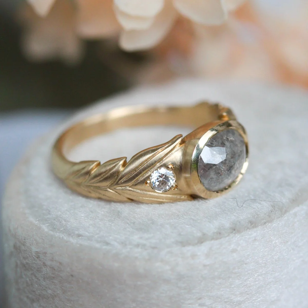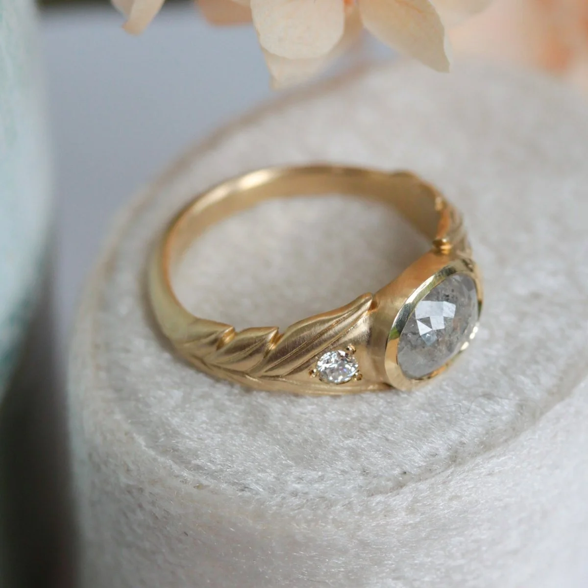 Rose cut grey diamond gold laurel ring £4,375.00 Sold Out Olive branch silver signet ring £95.00 Rose cut champagne diamond gold trilogy ring £3,945.00 Rowan leaf green sapphire gold engagement ring £2,140.00 Elder green beryl silver ring £140.00 Silver curved rowan twig ring £80.00 Leaf garland diamond engagement ring £1,915.00 Lily leaf blue sapphire engagement ring £1,885.00 Meadow trilogy diamond gold engagement ring £1,550.00 Oak twig silver aquamarine ring £95.00 Rowan twig curved gold wedding ring £790.00 Spinel and sapphire gold lichen ring £1,600.00 Elder green tourmaline gold ring from £715.00 Rowan leaf white sapphire gold engagement ring £2,025.00 Lavender flower silver ring £70.00 Elder leaf crown gold ring £585.00 Pale blue sapphire and diamond meadow trilogy ring £1,695.00 Leaf garland wishbone wedding ring £640.00 Willow leaf gold emerald ring £725.00 Elder leaf crown silver ring £85.00 Wheat Silver Topaz Ring £175.00 Oysterling silver crown ring £130.00